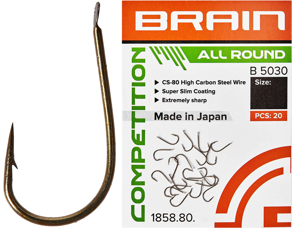 Гачок Brain All Round — класична та найуніверсальніша модель із круглим вигином і цівкою середньої довжини. Застосовується у фідерній і поплавцевій ловлі з використанням різних рослинних і тварин насадок.