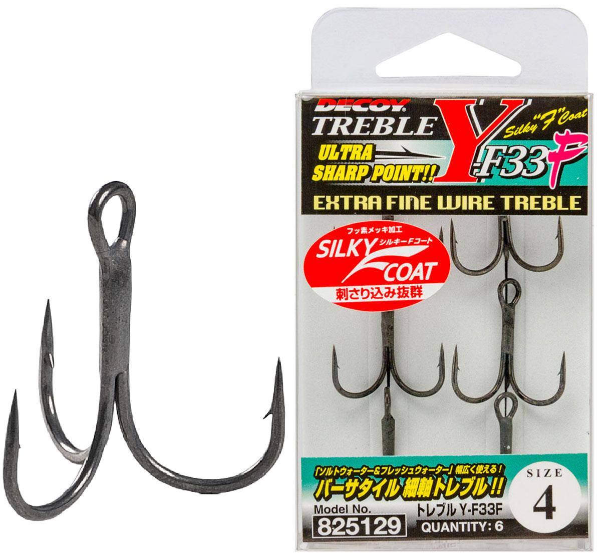 Тройник Decoy Y-F33F имеет классическую форму, подходящую для установки на воблеры, блёсны и силиконовые приманки. Его особенностью является тефлоновое покрытие, облегчающее проникновение жала в пасть рыбы, и уменьшающее блики. Высококачественная заточка и микробородка гарантируют удачную подсечку рыбы, при этом, исключая её внезапный сход. Широкий модельный ряд позволяет оснастить качественными тройниками приманку практически любого размера.
