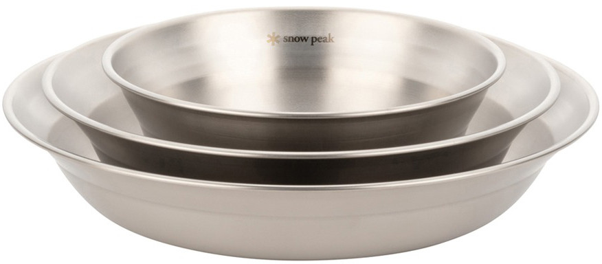 Набір посуду Snow Peak Renewed Tableware Set — гарне рішення для тих, хто збирається в кемпінг або на пікнік. Посуд виготовлений із неіржавкої сталі завтовшки 0.4 мм, що покращує його експлуатаційні властивості за порівняно невеликої маси. Різний діаметр і глибина мисок дають змогу комфортно вживати будь-які страви, чи то перше, чи то друге. Під час транспортування всі елементи компактно складаються один в одного, займаючи мало місця. В асортименті компанії пропонується базовий набір на одну персону Snow Peak Renewed Tableware Set Single або набір на чотирьох осіб Tableware Set L Family, який складається з 4 наборів Snow Peak Renewed Tableware Set SingleКомлектація набору Snow Peak Tableware Set Single: — тарілка велика (212 × 18 мм);- тарілка (209 × 40 мм); — миска велика (180 × 46 мм); — миска середня (141 × 53 мм).