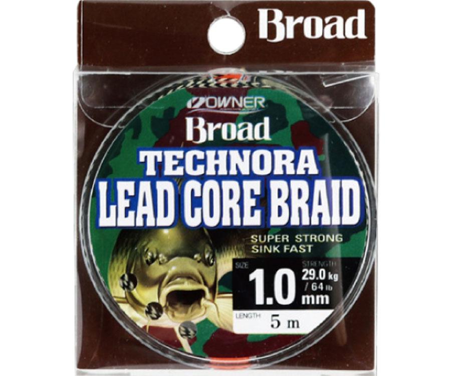 LEDкор Owner Broad Technora Lead Core — винятково міцний швидкозатемний матеріал зі олив’яним осердям. Притискає оснастки до дна та відіграє роль протизакручувача під час закидання. Камуфляжне забарвлення льодкору Broad Technora ідеально приховує його на тлі литого або покритого рослинністю дна. Матеріал стійкий до стирання. Broad Technora Lead Core має діаметр 1 мм, витримує навантаження до 29 кг, представлений у розмотках 5 м.