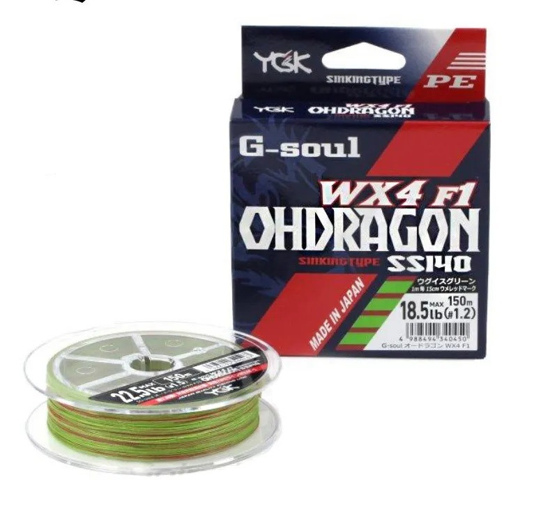 YGK G-Soul OHDRAGON WX4 F1 — перший шнур, що тоне, в асортименті YGK. Виготовлений за допомогою сплетіння (за технологією WX) чотирьох жил навколо флюорокарбонового осердя. Крім цього, шнур має спеціальне покриття, покликане продовжити термін експлуатації та надійно захистити поверхню шнура від абразиву. Застосування шнурів, що тонуть, насамперед виправдане під час донного лову на легкі приманки, у наших умовах — це ультралайтова ловля. Легкий монтаж швидше досягає дна, менше зноситься течією і забезпечує постійний контроль над приманкою. Нові можливості відкриваються для рибалки, що використовує шнур, що тоне, і під час лову на воблери, давно звичні приманки починають на проведенні заглиблення глибше, крім цього під час анімації методом твічингу, гра приманки стає правильнішою — шнур, що тонув, передає енергію ривка до приманки точно в горизонтальній площині. Багато в чому завдяки цьому багато воблерів японських виробників починають розкриватися під час твічингу на флюорокарбоні. Це далеко не все, на що здатний шнур, що тоне, відкрити для себе нові грані риболовлі зі шнуром OHDRAGON — буде простіше.