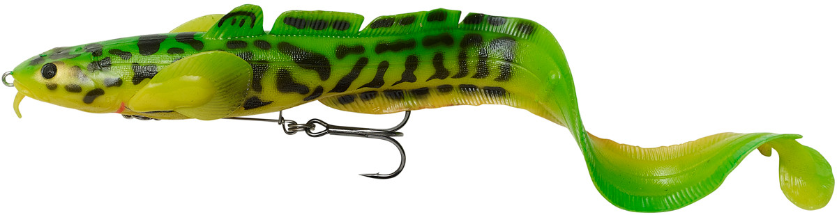 Свімбейт Savage Gear 3D Burbot Shallow — неймовірно реалістична силіконова імітація наліму, виготовлена за допомогою 3D-сканування, завдяки чому вдалося досягти детального опрацювання кожної частини тіла принади. Великий шикарний твістерний хвіст, який має 3D Burbot Shallow, здатний валяно грати на самих, що на є, повільних проводках. Цей чудовий об’ємний збалансований твістер призначений для лову великої щуки на мілководді, але за допомогою додавання додаткового грузилу його можна застосовувати й на великих глибинах. Обладнаний «майстеремчик» фіксованою оснасткою на стінкерах. Завдяки такій оснастці, у момент виведення, принада менш травмується. У хвості приманки є спеціальний отвір для брязкальця. Завдяки тому, що гра приманки на рівномірному проведенні натурально копіює справжнього наліму, наші щуки не проти поласувати таким вишуканим.