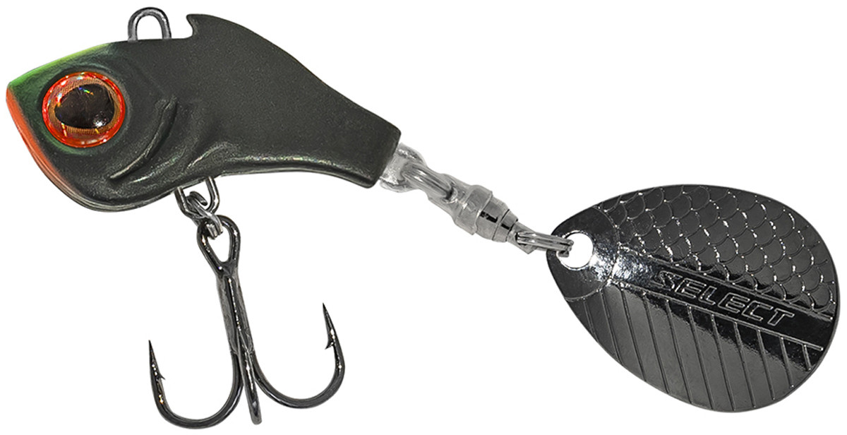 Тейл-спінер Select Turbo-II — оновлена та допрацьована модель популярної принади, яка має велику популярність серед рибалок-спінінгістів. Він об’єднує в собі вертушку, пилкер і ратлін за своєю роботою, але водночас має свої особливості. Важке компактне олив’яне тіло у формі рибки дає змогу робити максимально дальні закиди. Навіть зустрічний або бічний вітер не завадить доставити принаду туди куди потрібно. У тейл-спінері використовується стандартний краплеподібний пелюстка, змонтований на вертлюжці з підшипником, що забезпечує легкий старт приманки та її стабільну роботу. Спеціальний кембрик у місці кріплення пелюстки запобігає його перехлищенню під час закидання.Select Turbo можна спокійно назвати джиговою вертушкою, адже її основний робочий горизонт — це придонні ділянки. Ще одна перевага цієї приманки — вона зовсім не крутить шнур. Під час проведення пелюстки обертається, а тіло активно вібрує та стабілізує положення блешні у воді. Відповідний час для цієї приманки починається в другій половині весни та закінчується пізньою восени. Найчастіший трофей тейл-спінера Select Turbo-II — це, звичайно ж, окунь. Також він чудово підійде для лову судака, щуки, жереха та деяких інших видів риб. Випускається в 4 розмірах: 7г, 10г, 13г, 17г.