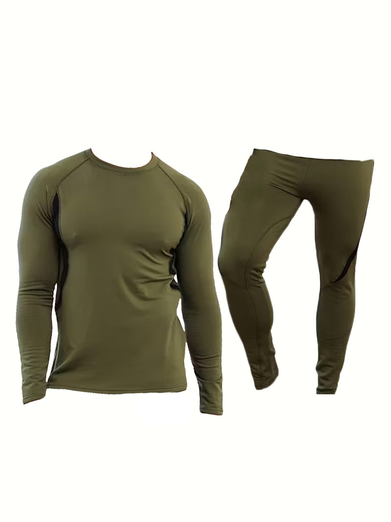 Чоловіча термобілизна GF у кольорі оливкова виготовлена з еластичного трикотажу на основі поліестеру та еластану.