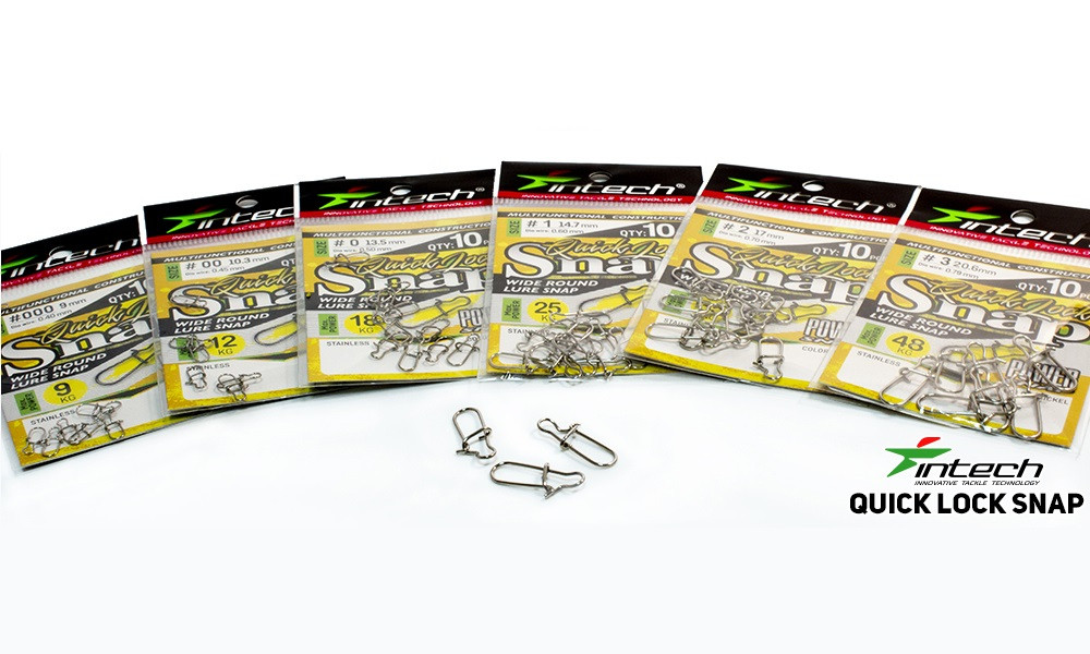 Intech Quick lock Snap — якісні бюджетні застібки в найпопулярнішій і перевіреній роками формі — “американка”. Має широкий розмірний ряд, від легких #000,000 до потужних застібок із розривним навантаженням 48 кілограмів на розрив. Quick lock Snap зручні у використанні та стануть надійним витратою в будь-якій снасті.